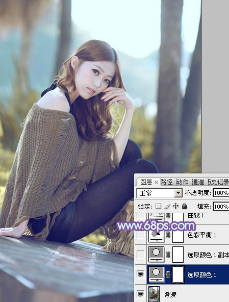Photoshop给树林中的美女加上柔和的冷色(2)
