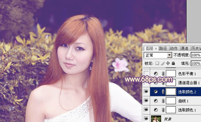Photoshop给绿篱边的美女加上甜美的暖色(4)