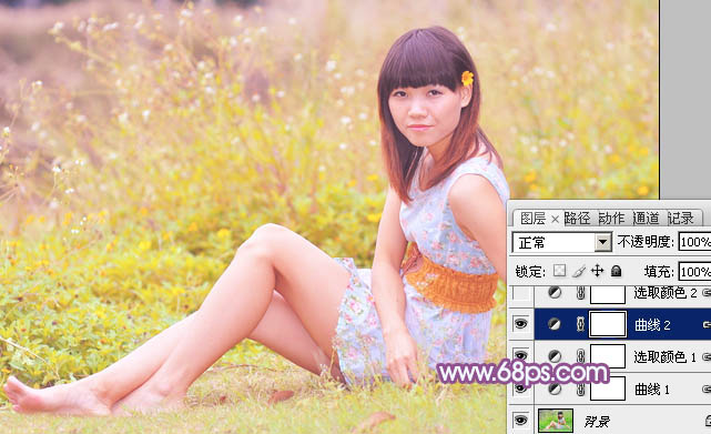 Photoshop给草地上人物加上淡淡的暖紫色