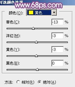 13、创建可选颜色调整图层,对黄,白进行调整,参数设置如图30,31,效果如图32。这一步主要微调图片高光部分的颜色。