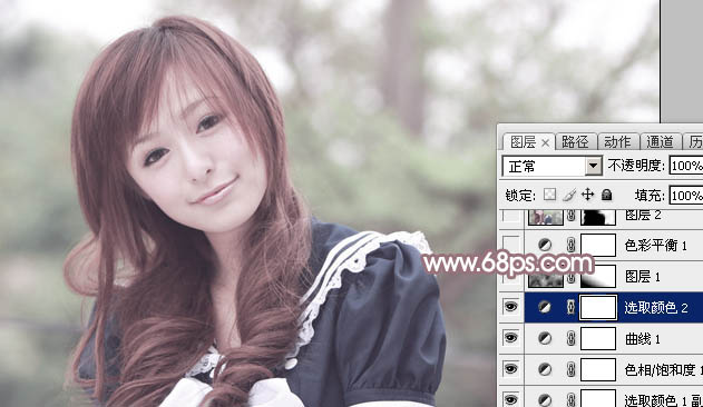 Photoshop给树林美女加上淡美的中性青红色(4)