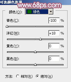1、打开素材图片,创建可选颜色调整图层,对黄,绿进行调整,参数设置如图1,2,效果如图3。这一步给图片增加暖色。