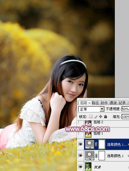 2、按Ctrl + J 把当前可选颜色调整图层复制一层,不透明度改为:50%,效果如下图。