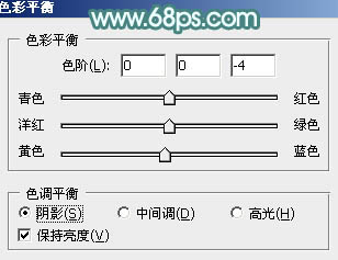 7、创建色彩平衡调整图层,对阴影、中间调、高光进行调整,参数设置如图16 -18,确定后按Ctrl + Alt + G 创建剪贴蒙版,效果如图19。这一步把人物肤色部分调红润一点。