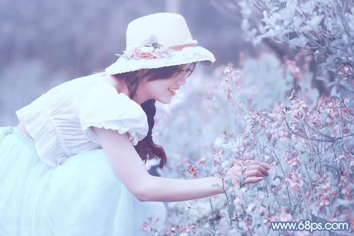 我们需要的颜色是淡蓝色,用通道替换是比较快捷的。替换后得到青红双色图片,再把青色转为青蓝色,红色转为红灰色,并把图片暗部调亮增加柔和感即可。