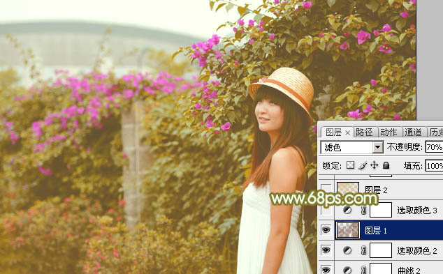 Photoshop给花草围墙边的美女加上柔和的韩系黄褐色(4)