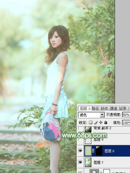 Photoshop给树边美女加上唯美的淡调嫩绿色(8)