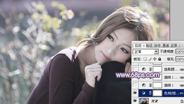 Photoshop给外景美女加上清爽的淡调紫红色