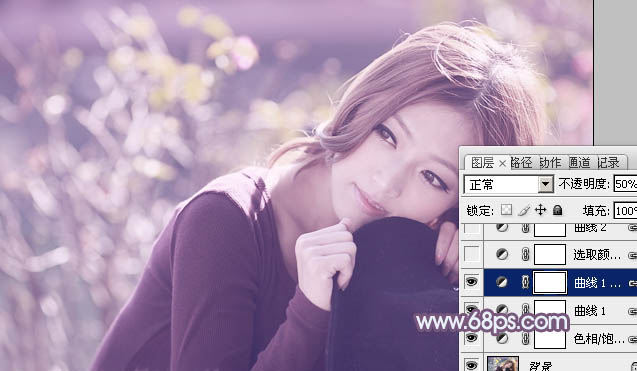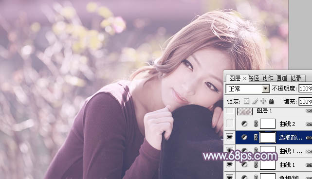 Photoshop给外景美女加上清爽的淡调紫红色(3)
