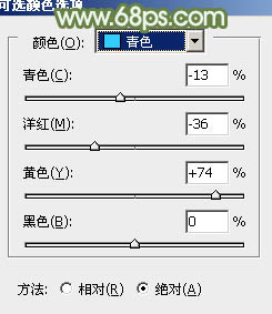 5、创建可选颜色调整图层,对红,青进行调整,参数设置如图9,10,效果如图11。这一步主要把图片中的青色转为绿色。