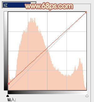 1、打开素材图片,创建曲线调整图层,对红色通道进行调整,参数设置如图1,效果如图2。这一步把图片暗部红色增亮。