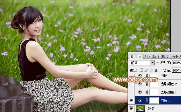 Photoshop给草地上的美女加上柔和的淡调橙褐色(2)