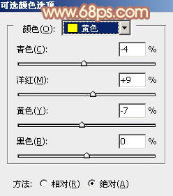 3、创建可选颜色调整图层,对红、黄、白、黑进行调整,参数设置如图6 - 9,效果如图10。这一步给图片增加橙红色。