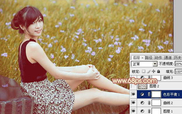 Photoshop给草地上的美女加上柔和的淡调橙褐色(5)