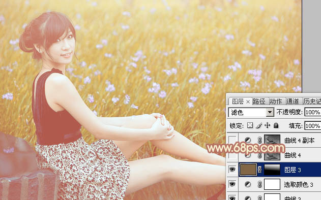Photoshop给草地上的美女加上柔和的淡调橙褐色(7)