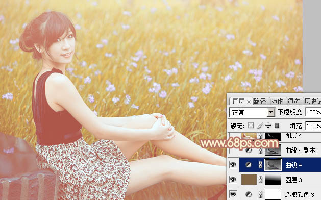 Photoshop给草地上的美女加上柔和的淡调橙褐色