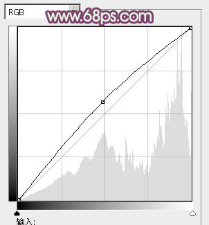 1、打开素材图片,创建曲线调整图层,对RGB进行调整,把全图稍微调亮一点,参数及效果如下图。