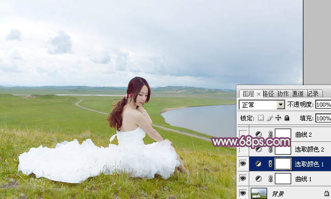 Photoshop给草原人物图片加上小清新的黄蓝色(2)