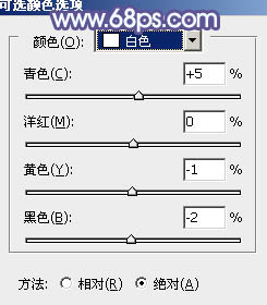 5、创建可选颜色调整图层,对红、黄、绿、白、黑进行调整,参数设置如图11 - 15,效果如图16。这一步主要把背景部分的绿色转为黄绿色。