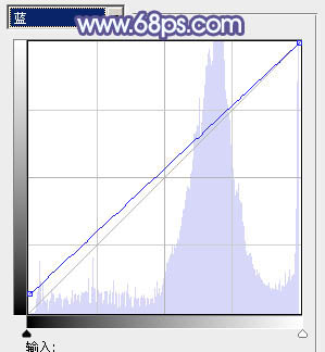 7、创建曲线调整图层,对RGB,蓝通道进行调整,参数设置如图18,19,效果如图20。这一步适当给图片增加亮度,同时增加蓝色。