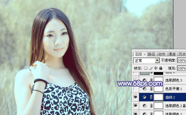 Photoshop给绿树边的美女加上淡美的蓝黄色(5)