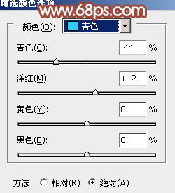 4、创建可选颜色调整图层,对黄、绿、青、中性色进行调整,参数设置如图10 - 13,效果如图14。这一步减少背景部分的绿色,增加红褐色。