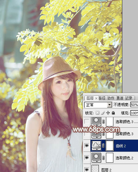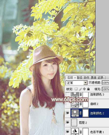 Photoshop给绿树边的美女加上甜美的小清新淡褐色(5)