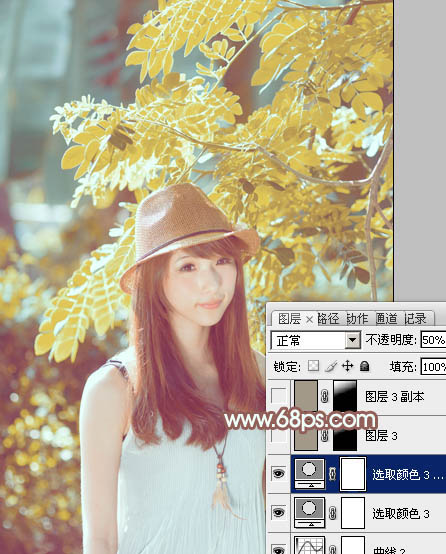 9、按Ctrl + J 把当前可选颜色调整图层复制一层,不透明度改为:50%,效果如下图。