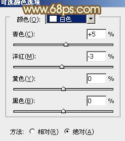 2、创建可选颜色调整图层,对红、黄、白、中性色进行调整,参数设置如图5 - 8,效果如图9。这一步微调背景及人物肤色颜色。