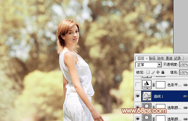 Photoshop给外景人物加上欧美流行的淡调黄褐色