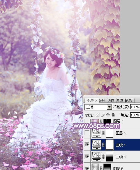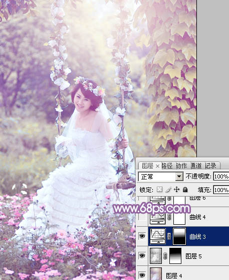 Photoshop给秋千上的美女加上唯美的淡调蓝黄色(7)