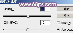 8、创建亮度/对比度调整图层,适当增加亮度和对比度,参数及效果如下图。