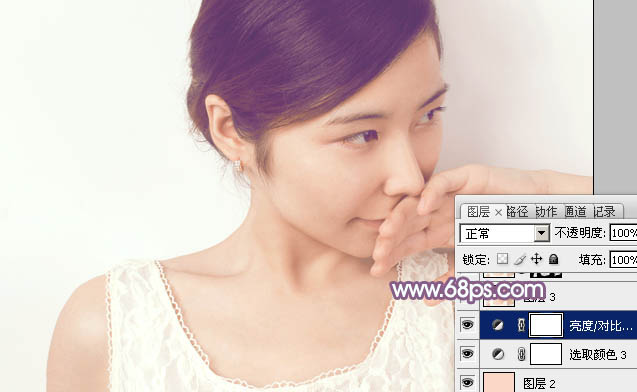 Photoshop给靠墙壁的美女加上流行的淡黄色(6)