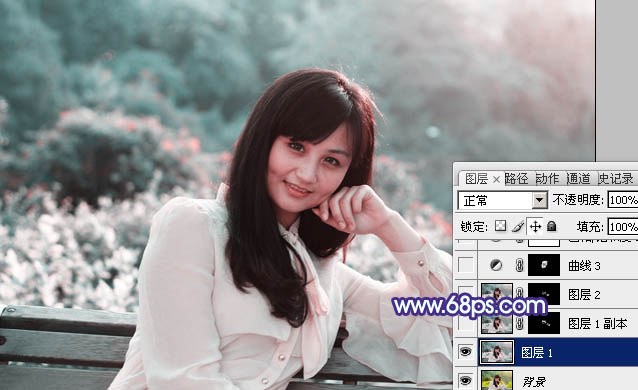 PS通道替换打造唯美的淡调青蓝色外景人物