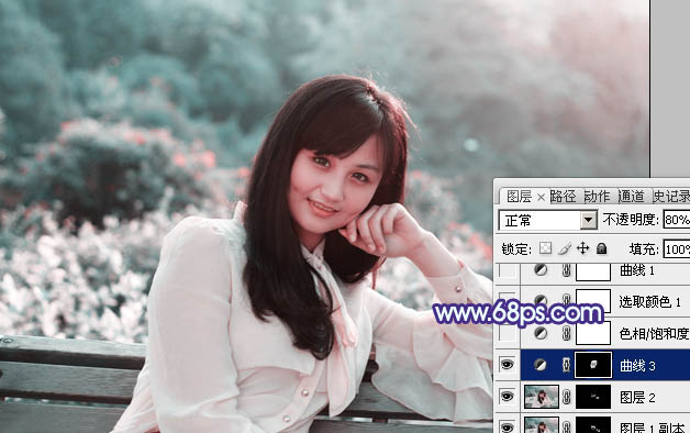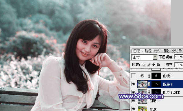PS通道替换打造唯美的淡调青蓝色外景人物(2)