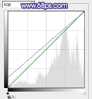 10、创建曲线调整图层,对蓝色通道进行调整,参数设置如图23,确定后把图层不透明度改为:50%,效果如图24。这一步给图片暗部增加蓝色。