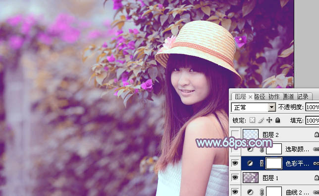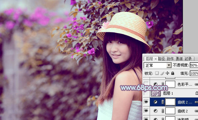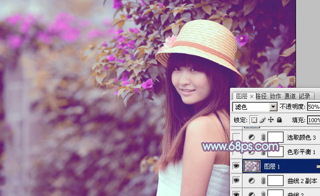 Photoshop给花边的美女加上甜美的暖紫色(5)
