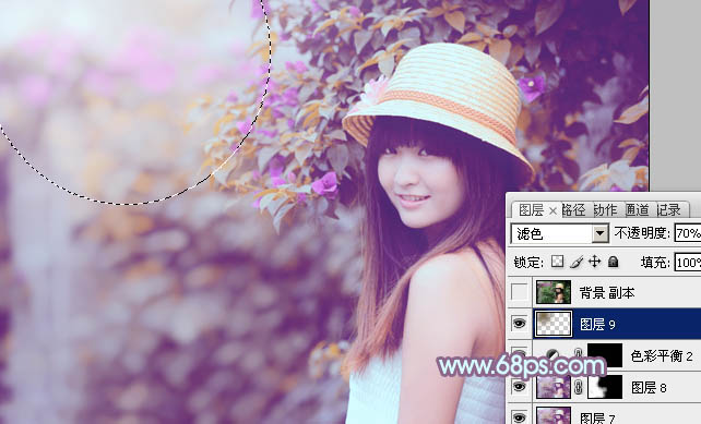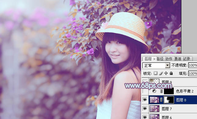Photoshop给花边的美女加上甜美的暖紫色(8)
