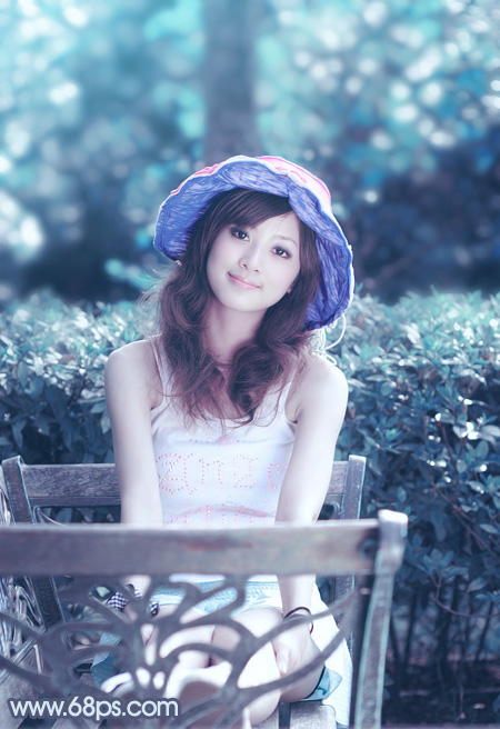 素材图片以绿色为主,转为青蓝色只需要把图片中的黄绿色转为青色,绿色及暗部转为蓝色,再在高光部分增加一些淡蓝色即可。