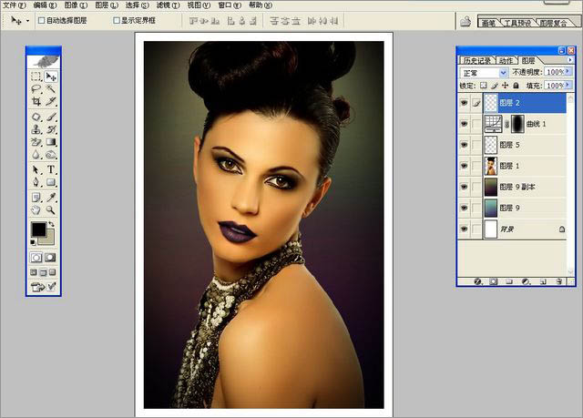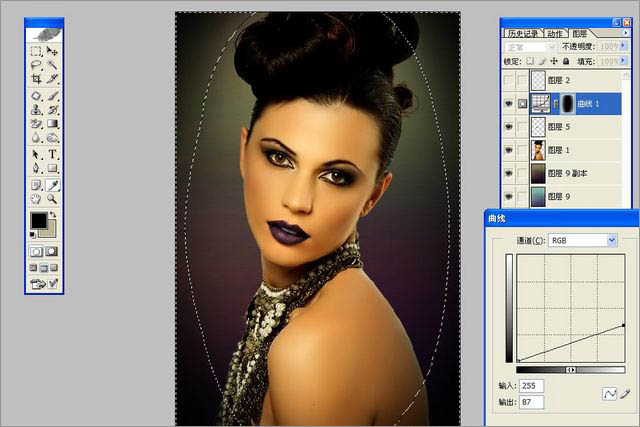 15、选择快捷键O压暗工具对人物;脸的两侧进行压暗处理营造复古的效果更佳鲜明。