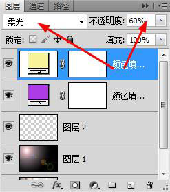 10、将混合模式设置为“柔光”,不透明度设置为60%。