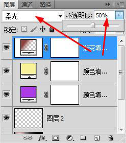 12、将图层的混合模式设置为“柔光”,不透明度设置为50%。