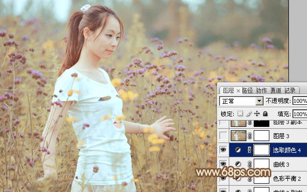 Photoshop给花草中的人物加上甜美的淡褐色
