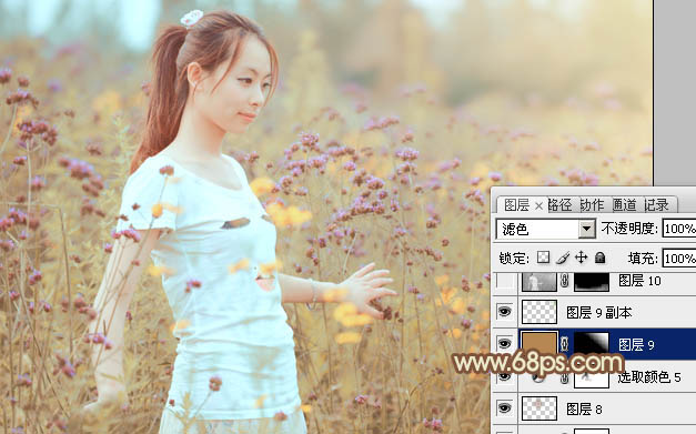Photoshop给花草中的人物加上甜美的淡褐色(8)