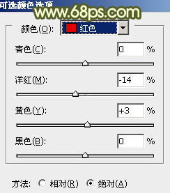 3、创建可选颜色调整图层,对红、黄、绿、中性、黑进行调整,参数设置如图5 - 9,效果如图10。这一步把背景部分的黄绿色转为橙红色。