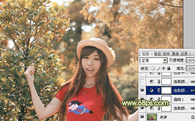 Photoshop给树林中的人物加上漂亮的橙绿色(3)