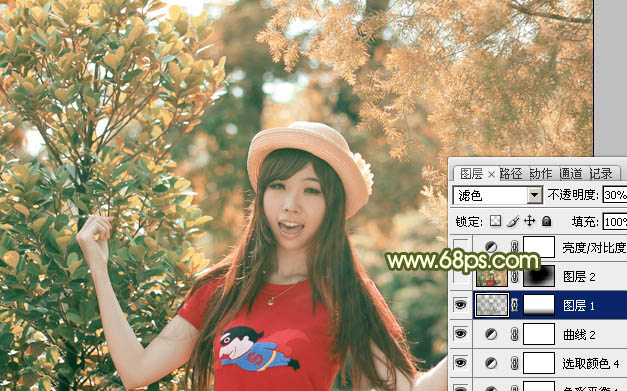 Photoshop给树林中的人物加上漂亮的橙绿色(7)