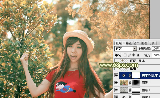 10、创建亮度/对比度调整图层,适当增加图片对比度,参数及效果如下图。