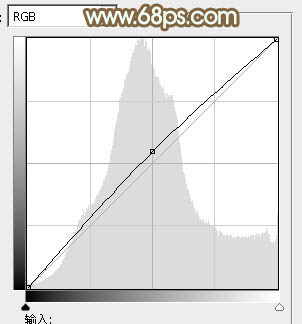 1、打开素材图片,创建曲线调整图层,对RGB进行调整,把全图稍微调亮一点。
