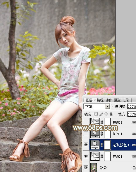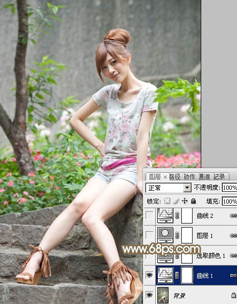 Photoshop给花草边的美女加上柔和的黄褐色(2)
